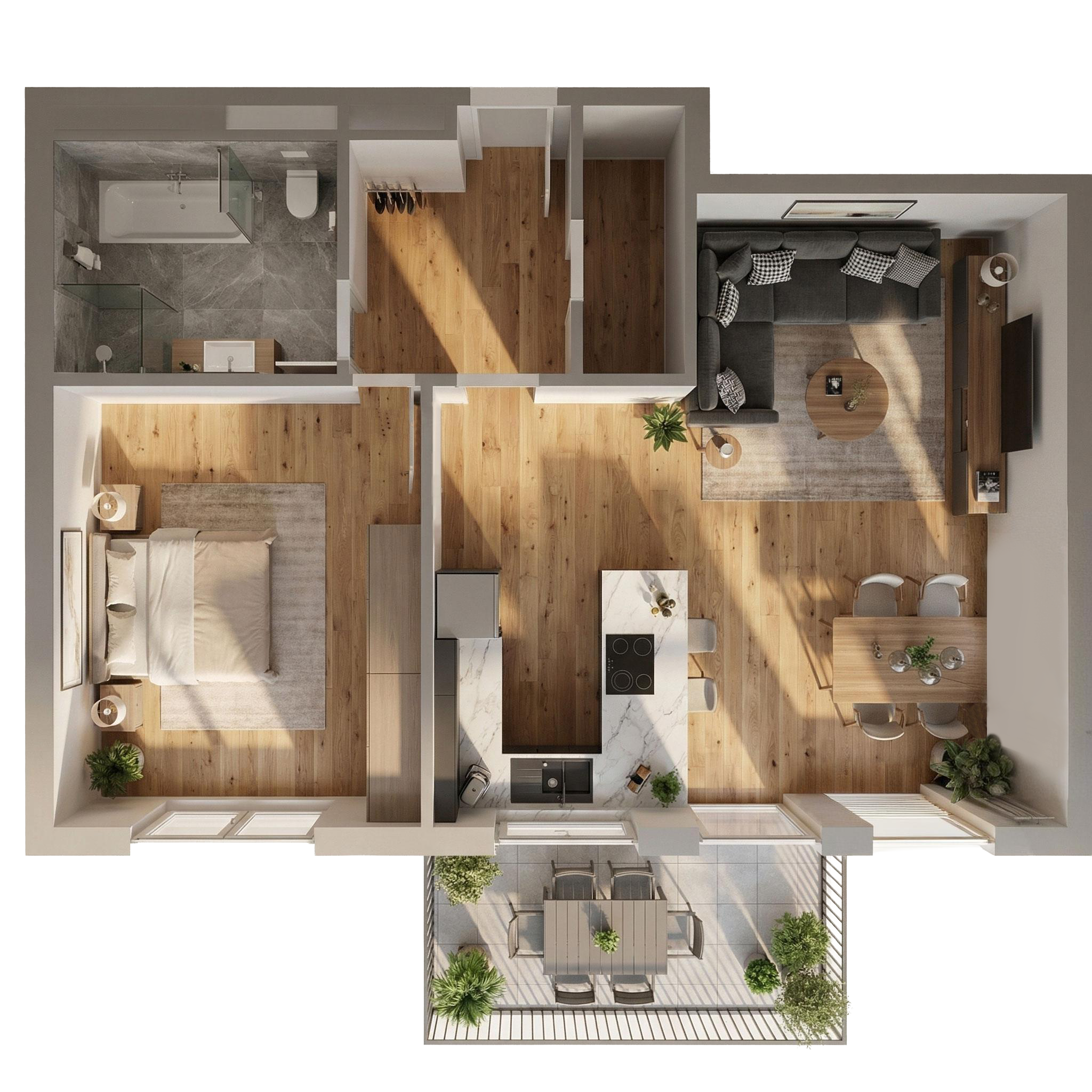 Die kompakte und zugleich funktionale Aufteilung schafft ein ausgewogenes Wohngefühl.